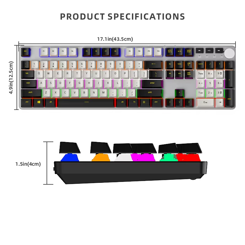 107 Keys Aluminum Mechanical Keyboard with Knob Rainbow Backlit Anti-Ghosting